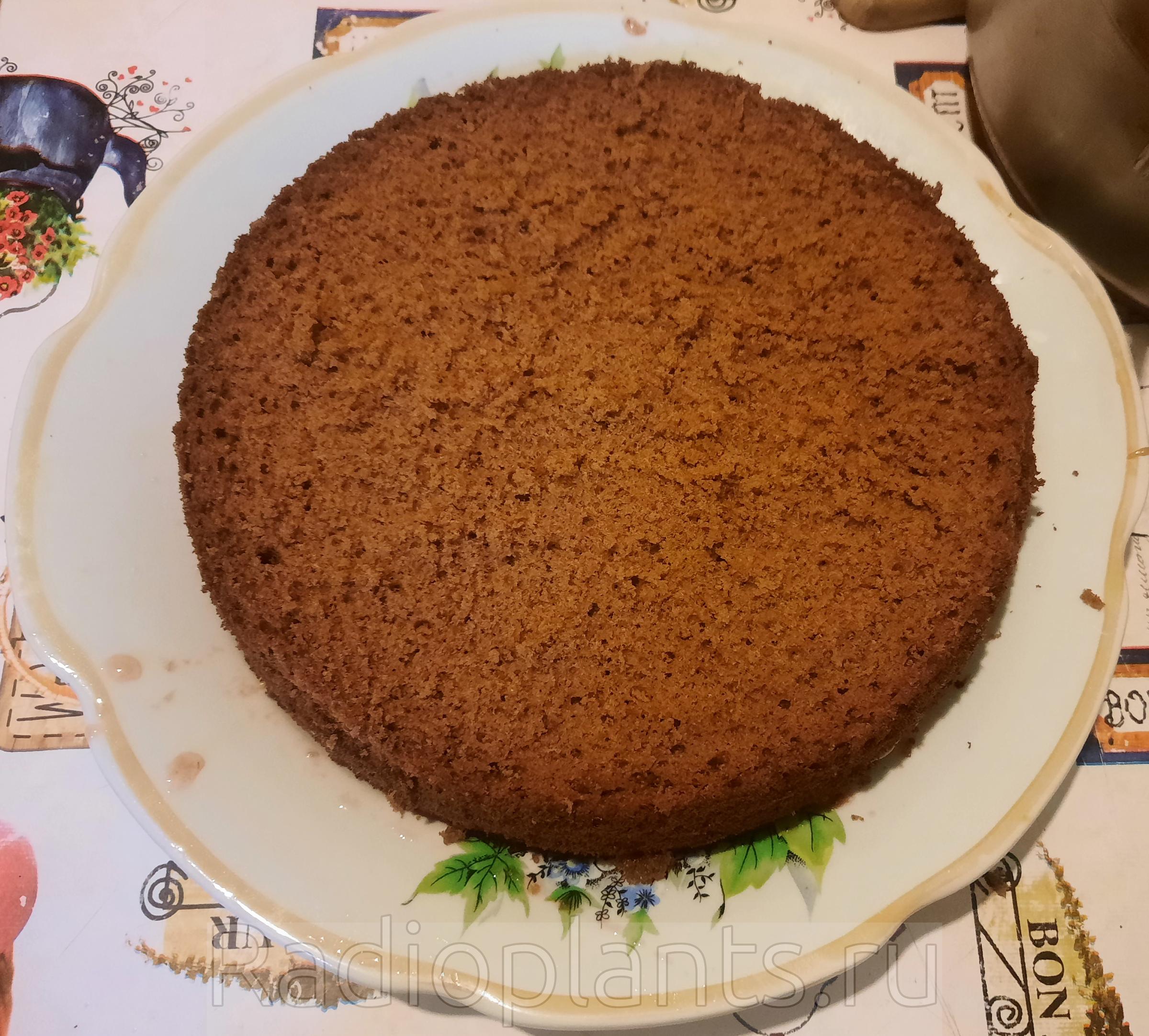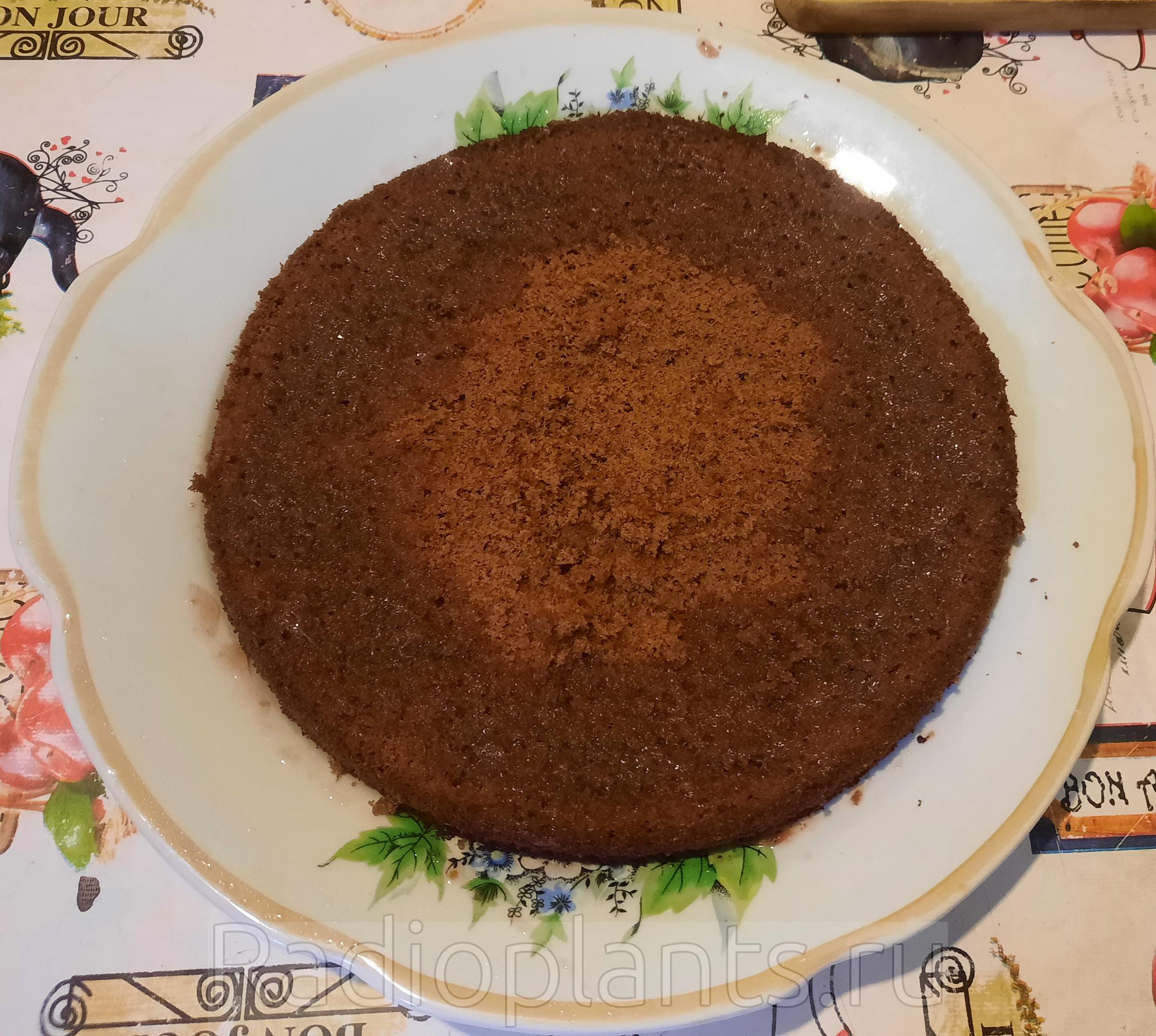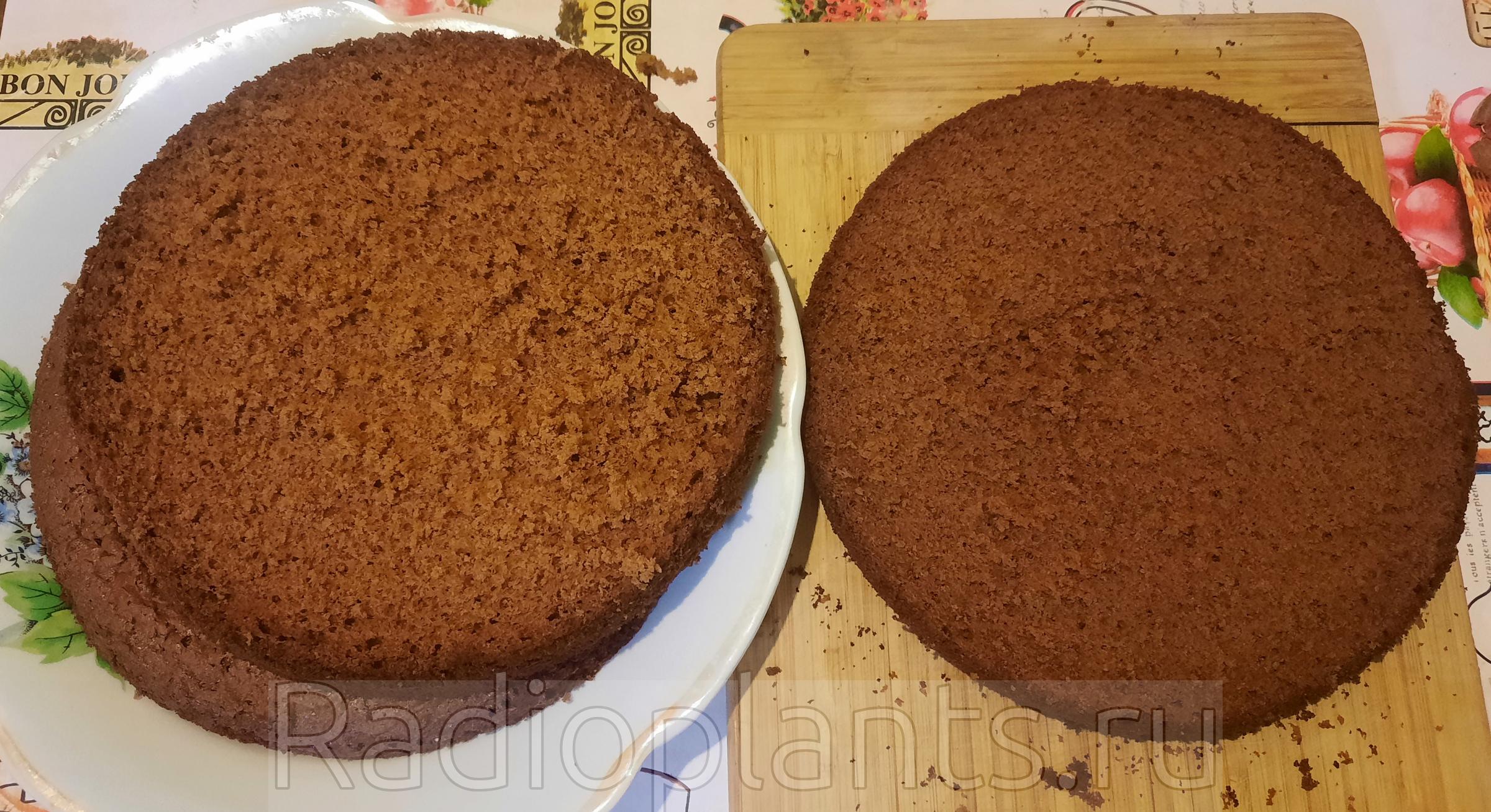 Коржи кладём в пакет и отправляем в холодильник минимум на 3 часа. Можно оставить на ночь. Пробовал отправлять в холодильник целый бисквит, а уже потом нарезать коржи. Так тоже можно, но на мой взгляд горячий режется легче.