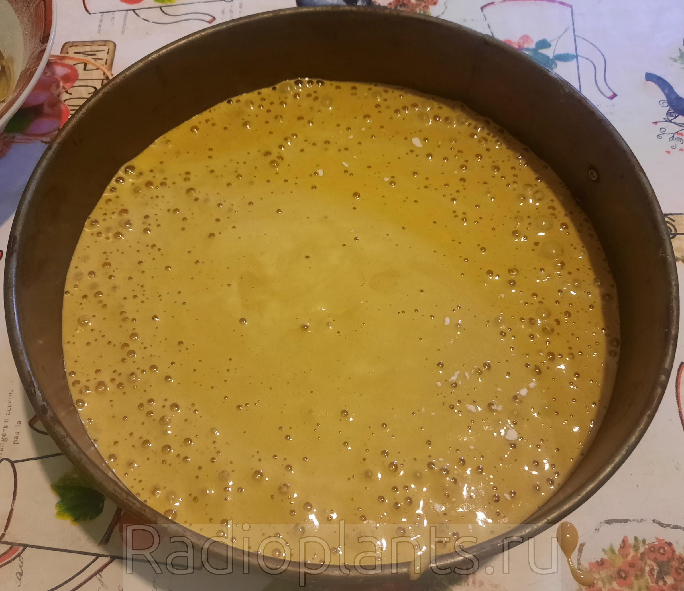 Как только вся мука замешана, выливаем тесто в форму и сразу отправляем в духовку.